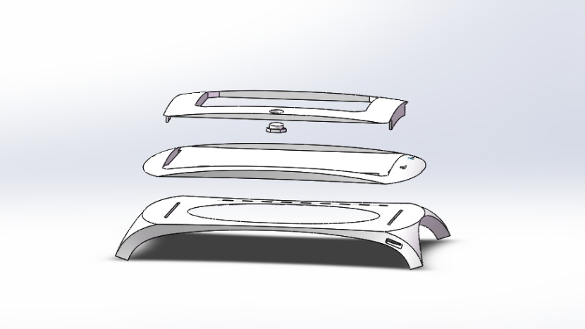 由于曲面造型金属加工有较高的难度与工艺成本,我们的曲面手写板不考虑用金属加工来做.考虑到3D打印的灵活性,曲面手写板主要采用3D打印工艺,将整个手写板分为三块进行分别打印,依靠摩擦进行紧固.