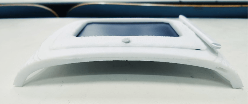 首先对于我们组第一块手写板来讲,由于曲面的存在,金属加工的难度较大,所以我们组成员决定用3D打印来制造第一块手写板的基体、按钮以及盖板.