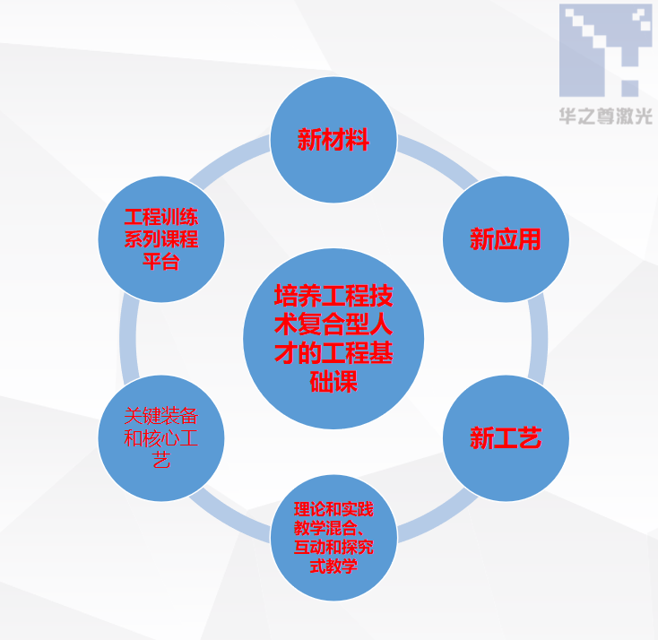 以特种加工-激光精密加工对特定功能新材料的制造为基本出发点,牵引其它制造方法于整个产品中;教学过程与制造方法相结合的学习模式;
