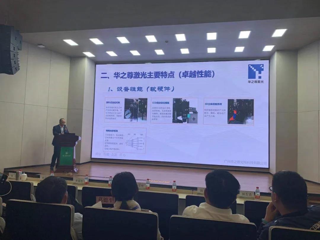 会议中讲述了华之尊激光设备的卓越性能:探针式自动对焦、CCD自动定位模组、3D立体排烟系统等。