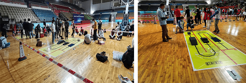 在智能终端配送机器人比赛现场,参赛队员将机器人调试后进行比赛,随着裁判宣布“比赛开始”后,参赛队员拿起任务码对应机器人扫描区,机器人扫描二维码获取收货点信息,扫描成功,机器人对应仓门打开,装入物料后,关上仓门,机器人前往任务要求地收货点。配送过程中机器人自主规划路径、自动识别交通灯、障碍等,在规定时间内,实现物料的自主运输和正确投寄。