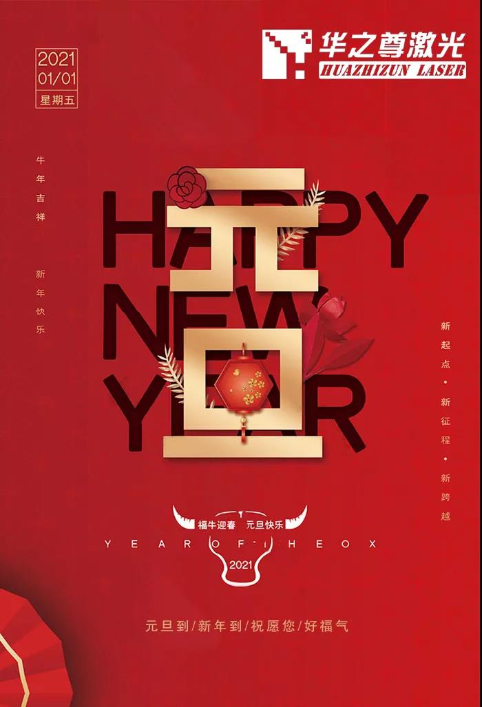 岁末年初、辞旧迎新!伴随着大家的辛勤与汗水,极不平凡的2020即将结束了,充满希望的2021马上来临。在此,华之尊激光恭祝大家元旦快乐!愿你福到、运到、开心到!!!