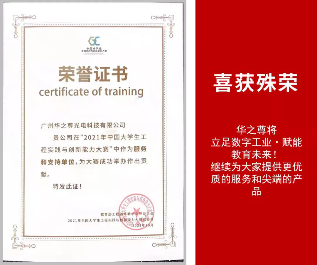 ● 华之尊很荣幸能成为本次大赛指定的服务和支持单位,为了解决学生激光加工环节的问题,我们提供了目前工业制造与各大高校常用的一款精密型HZZ-V4000激光切割雕刻一体机,它的有效工作幅面达到1000mm*600mm,运用数位式功率控制,可由0.1—100%无段控制,且可依图形成比例的控制脉波产生速度,同时可依图形颜色设定不同功率。采用5G加速度,最大速度达到3600m/s,大大提高了工作效率,一键式打印输出,无需转换,避免图形在转化过程中失真,从而使产品精度得到更高保证,操作就是这么方便简单!