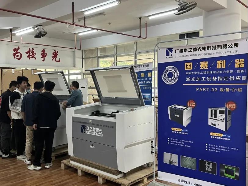 本次大赛采用的是我司研发、生产的,也是目前各大高校与先进制造企业常用的一款精密型非金属切割雕刻一体机HZZ-V4000作为竞赛中“激光加工”竞赛环节的指定专用设备之一,我司倍感荣幸,为了完全保障竞赛的顺利开展,我司还安排了技术人员在比赛现场指导参赛选手正确操作,全力为参赛选手能拿到好成绩做服务!