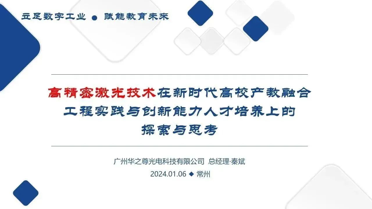 总经理秦斌在会议现场以《高精密激光技术在新时代高校产教融合工程实践与创新能力人才培养上的探索与思考》为题,作了会议报告。